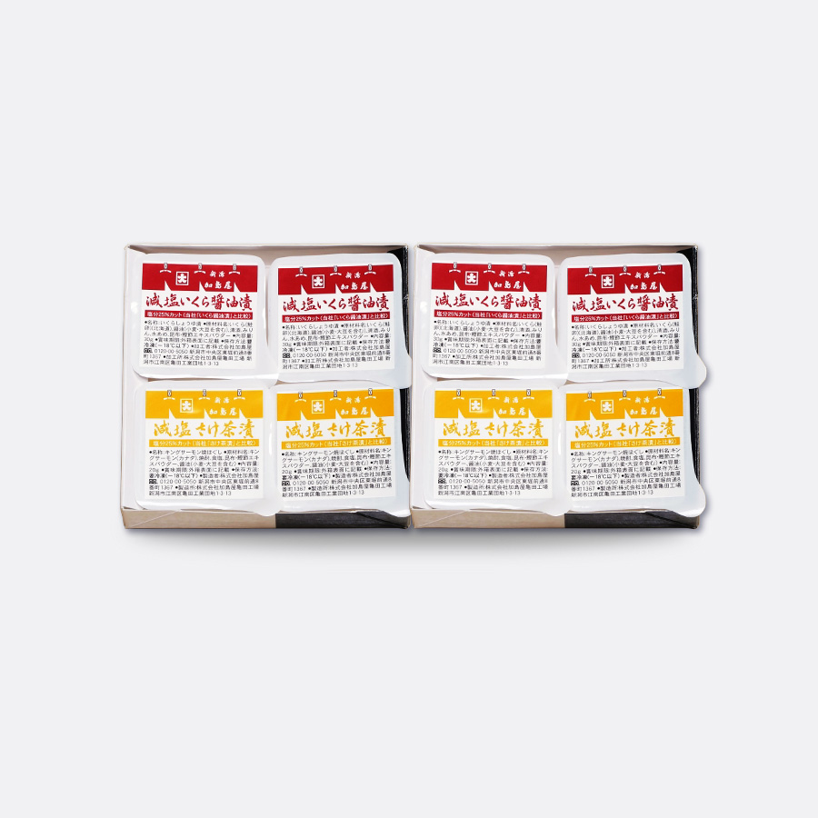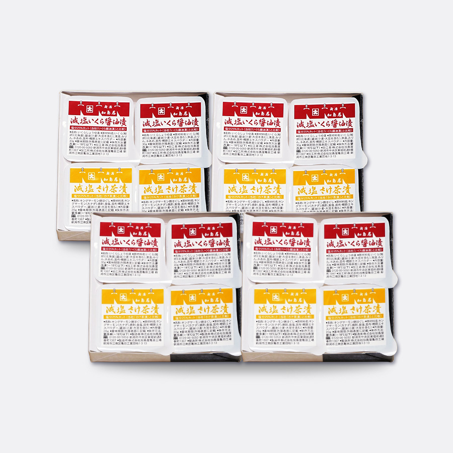 内容量 : 減塩さけ茶漬・いくら醤油漬セット×4※ 1函内訳・減塩 さけ茶漬 20g×2・減塩 いくら醤油漬 30g×2