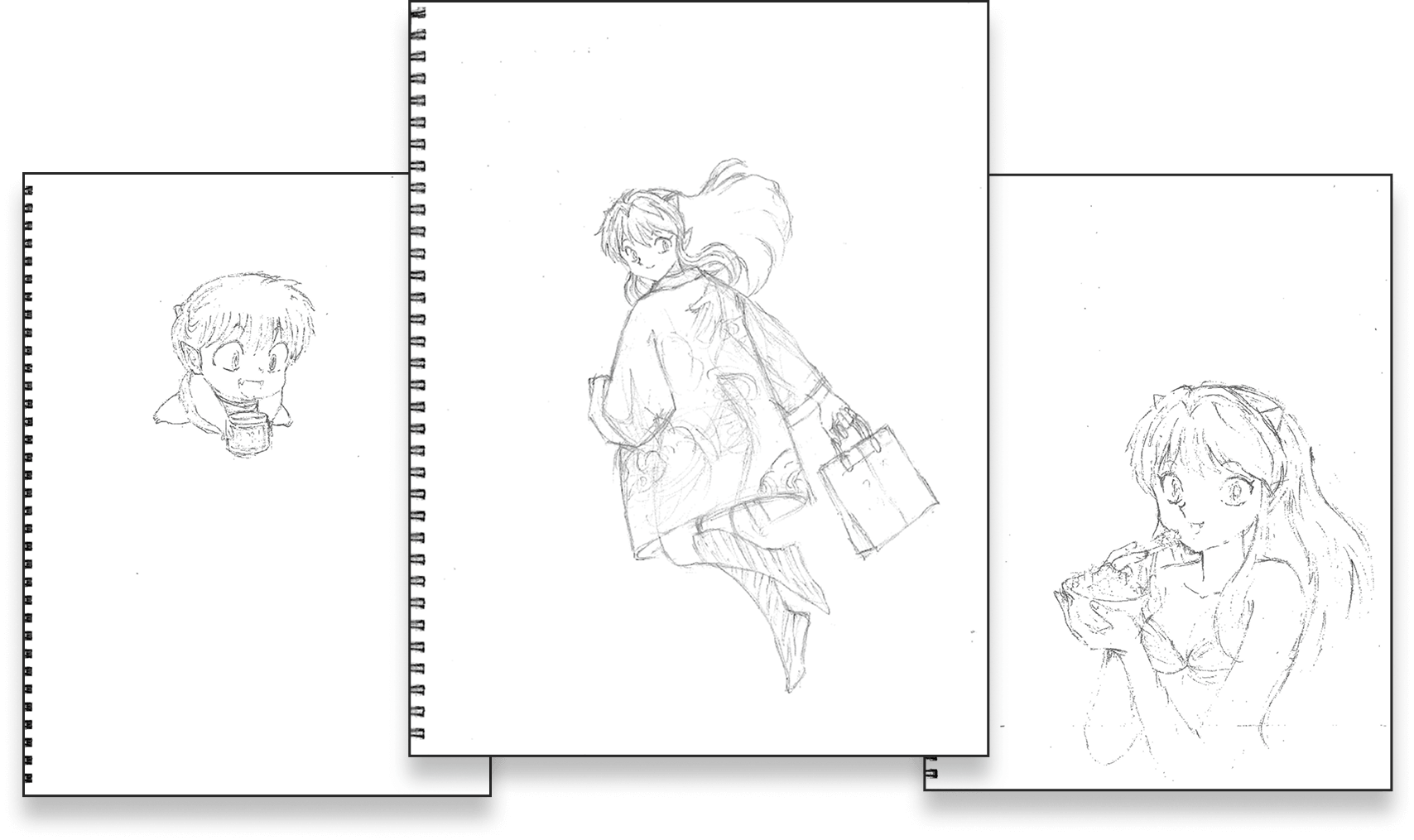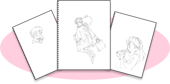 下書きには本製品にない案も含まれていましたが、本製品のイラストが採用されました。