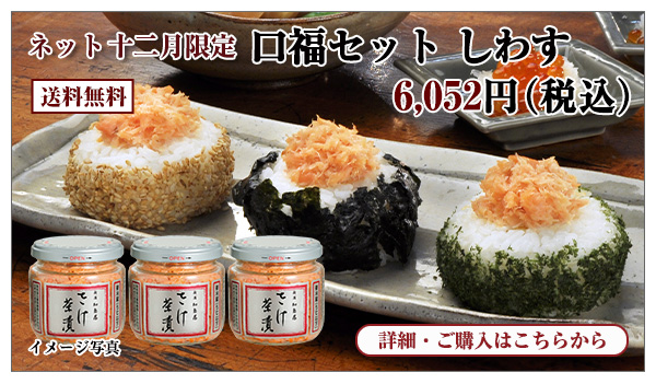 12月の口福セットは人気商品「さけ茶漬」の中瓶3本をセットにしました!