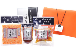 鮭といくらの旨味に糀のほのかな甘みと風味が相まった人気商品「さけといくらの糀漬」照焼にした帆立とクリームチーズの濃厚な味わいが絶妙の「帆立照焼醍醐味」の袋詰と、看板商品「さけ茶漬」の大ビンをセットにしました。お酒と相性が良く、お酒が好きな方へおすすめのおつまみセットです。